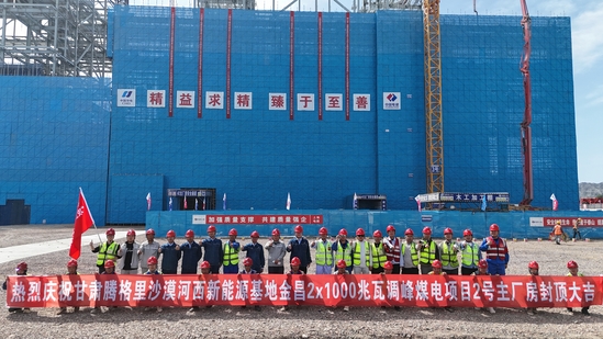 甘肃金昌调峰煤电项目2号机组主厂房结构顺利封顶 | |