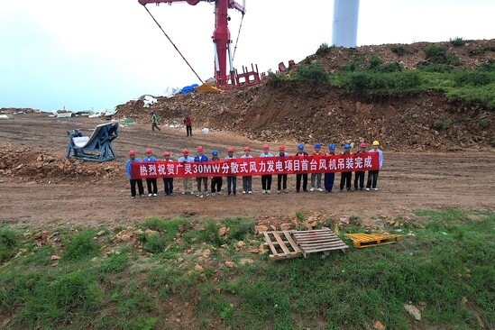 广灵30兆瓦分散式风力发电项目首台风机吊装完成 | |